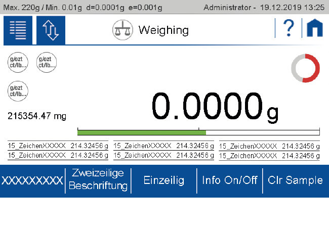 - 具有穩定性預測的即時穩定性指示器,紅圈越快消失、代表秤量過程的穩定性越高