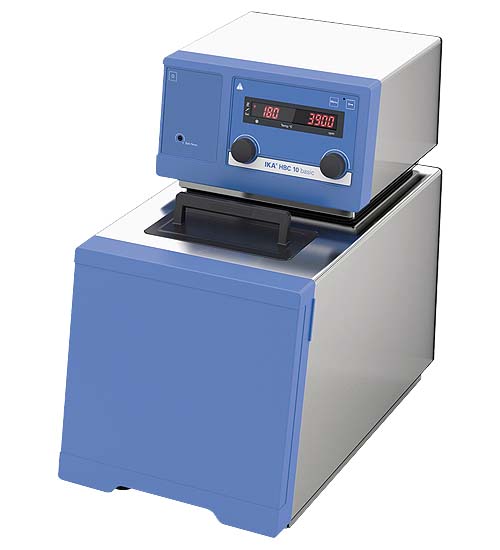 恆溫水浴槽 (恆溫油浴槽) HBC 10 basic 能精確維持槽內液體溫度, 最高至 200C°. 不鏽鋼製儲液槽容量 8-11 公升, 備配強力可調速加壓/抽液幫浦. 超大接液面積加熱器, 升溫穩定迅速. 前方排液導管, 方便安全排出槽內液體, 確保人員安全. LED 數位顯示溫度及幫浦速度.