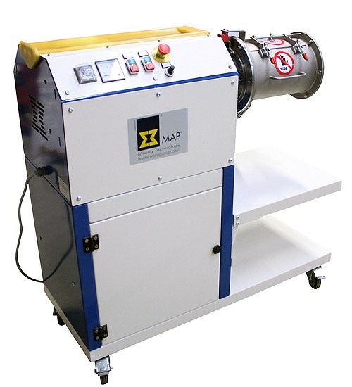 批量式混合機 MLH 採用機械性流化床工作原理,實驗結果能直接放大後套入生產線實際使用,满足工業界對 RD 研發和打樣過程之要求。在一些情况下,為得到預期混合效果,可以在 6L/12L 混合機内安装高速切碎裝置,適用於製藥業、食品業、化學工業、以及粉末冶金。