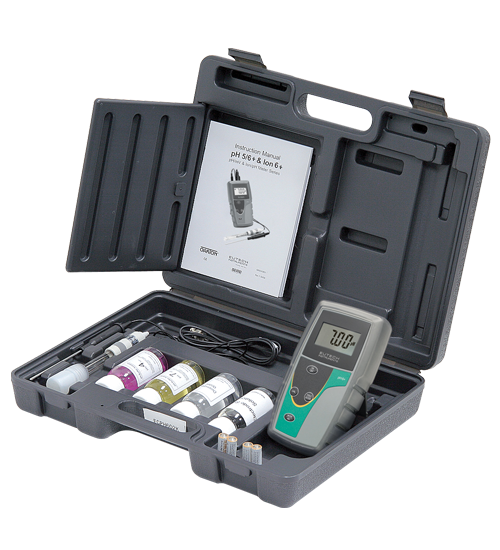 - 經濟型機種 pH-6+ 功能包括:pH 酸鹼度計、mV 氧化還原電位計、及溫度計