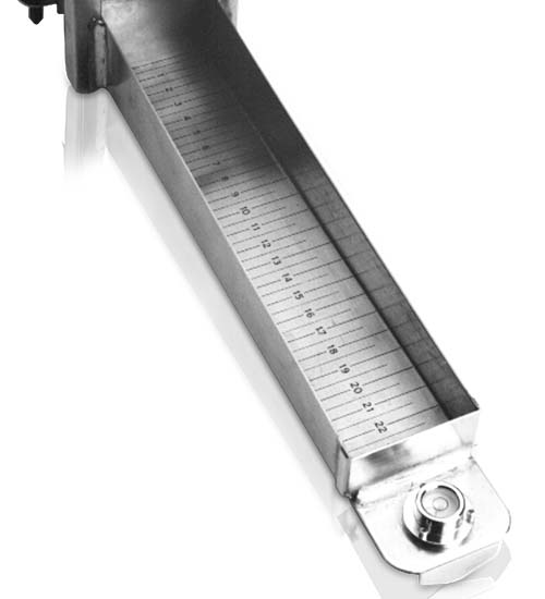 - 整體以不鏽鋼製造,底板設有精密刻度 (每格 0.5cm)